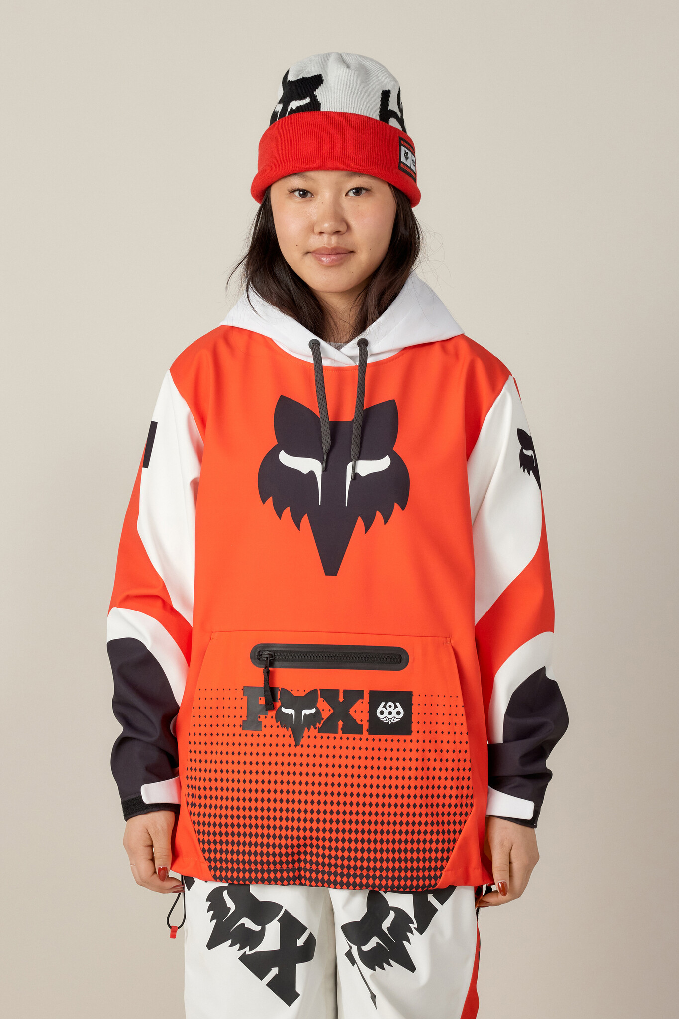 • In collaboration with Fox Racing, this 10k waterproof, fleece lined tech hoody with a zipper pocket keeps your valuables secure.