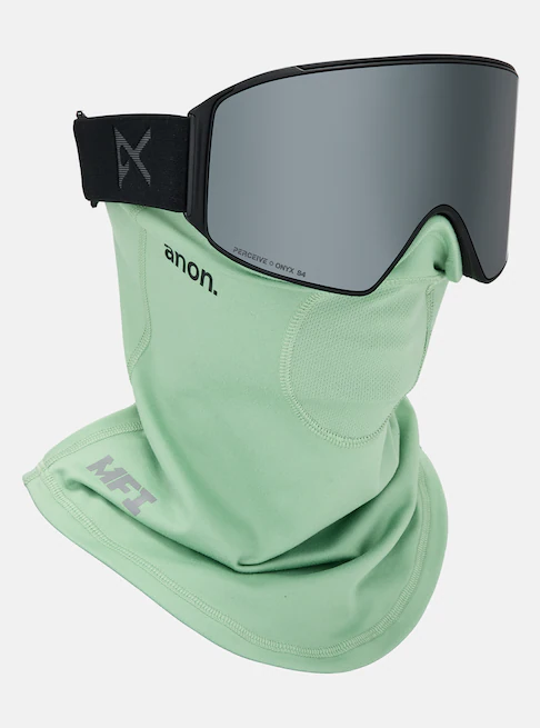 The Anon MFI Lightweight Neck Warmer features magnetic integration for a seamless goggle seal. Its breathable fabric provides warmth in mild weather, while a mouth vent ensures fog-free vision. Magnets are removable for easy washing.