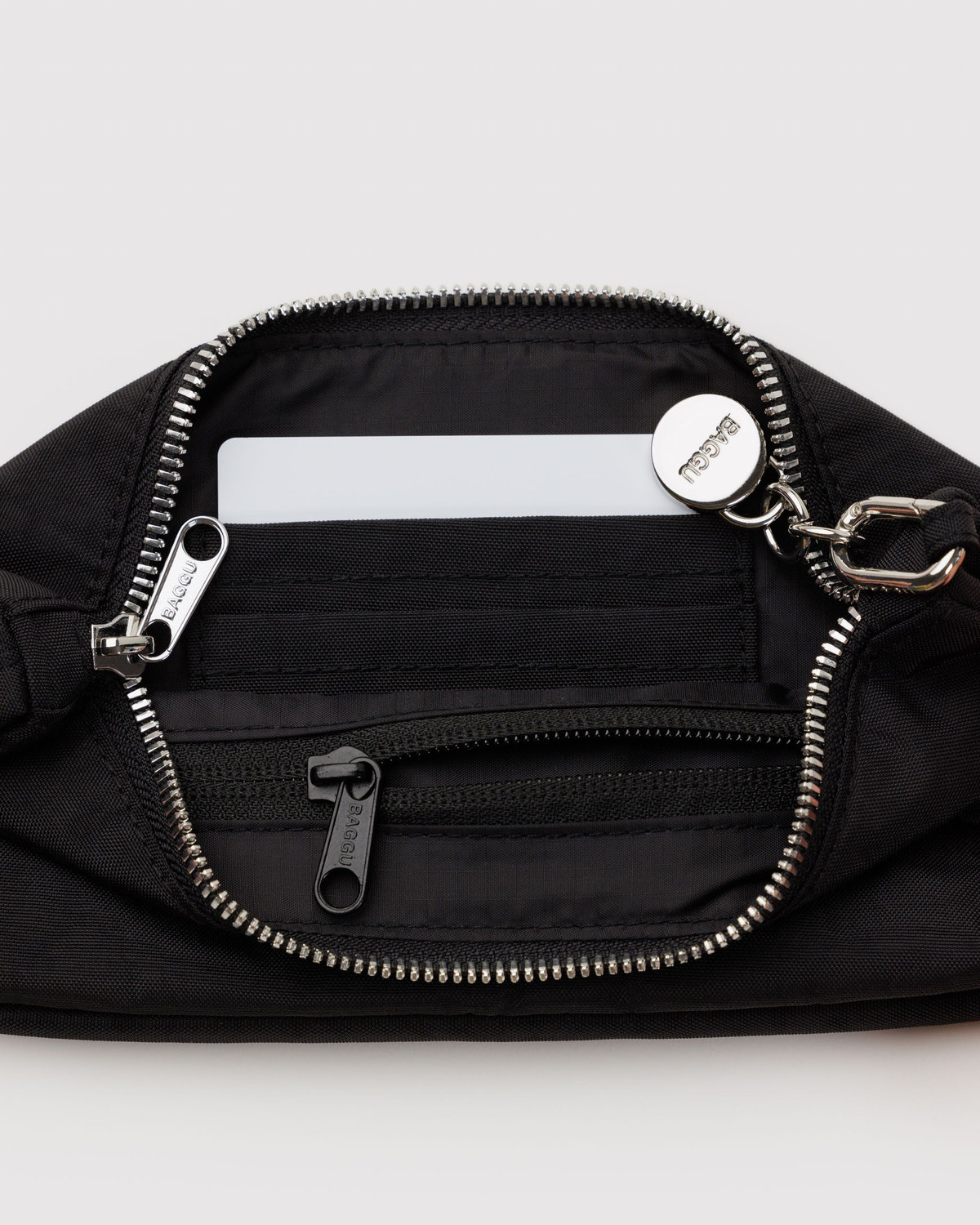● Interior zip pocket● Two interior slots fit up to four cards● All metal hardware including charm clip and detachable smiley face charm.● Adjustable strap [20” - 26.3”]● 9.5 in. x 4 in. x 1 in● Secure zip closure● Recycled heavyweight nylon● Machine Washable