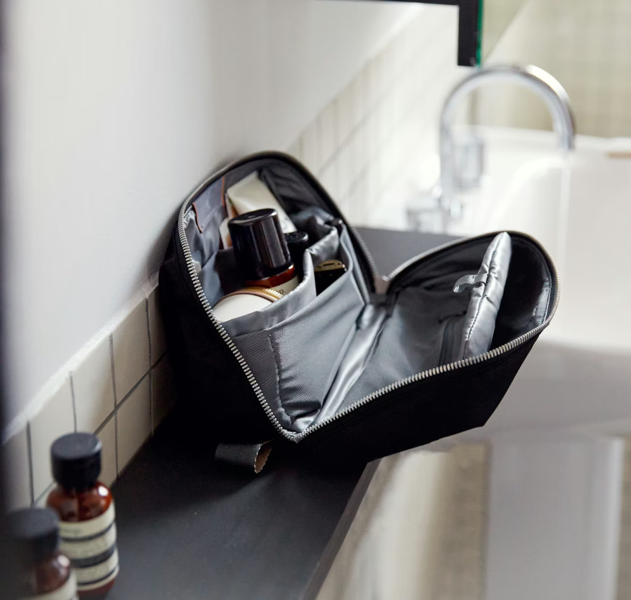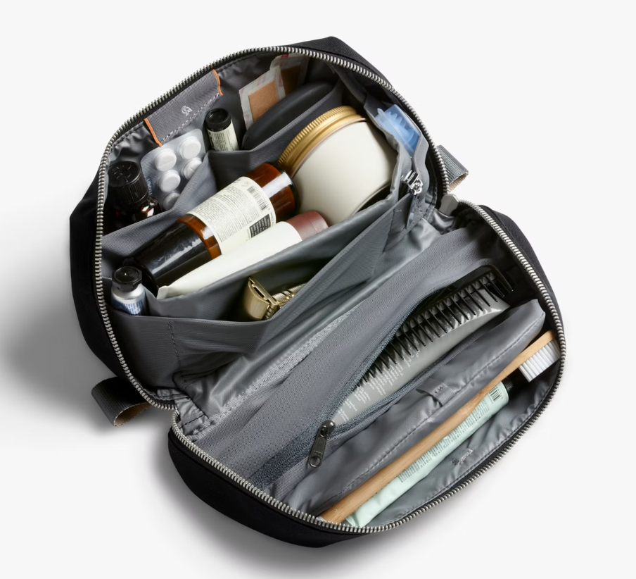 3.5L toiletry kit with an angled zipper for lay-flat access. Features internal mesh pockets, a magnetic toothbrush sleeve, and water-resistant lining. Made from durable Baida Nylon, perfect for keeping long-trip essentials organized.