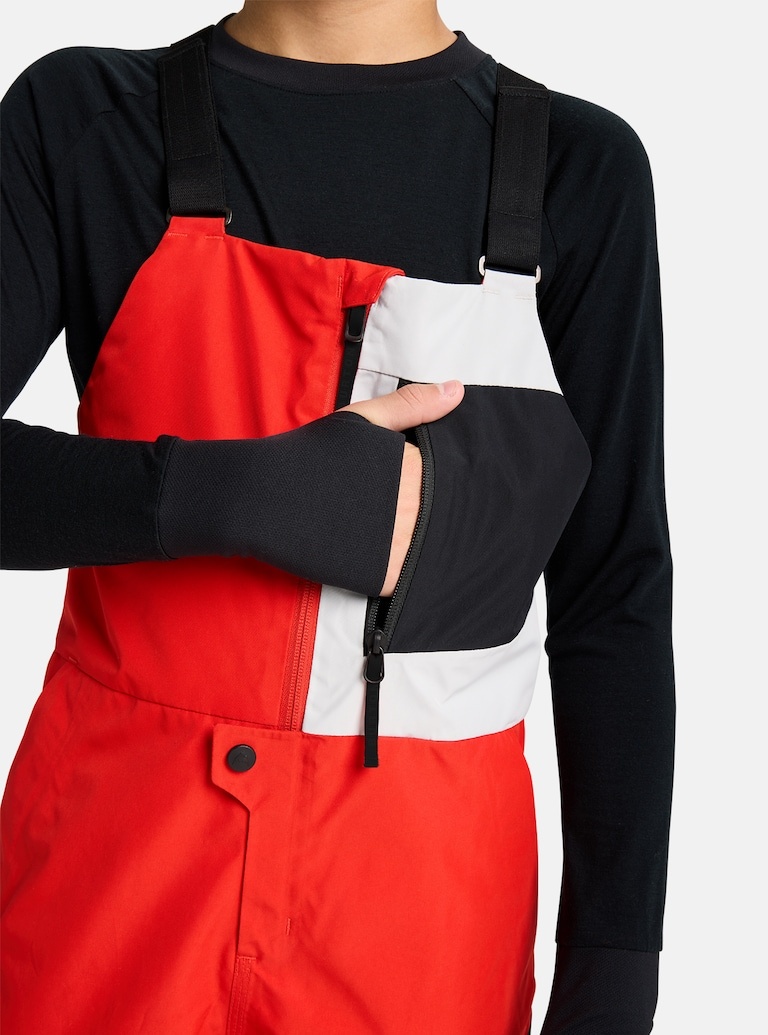 Adjustable suspender straps, built-in boot gaiters, a stretch back panel, and snap-adjustable reinforced cuffs make for smooth days at the mountain.