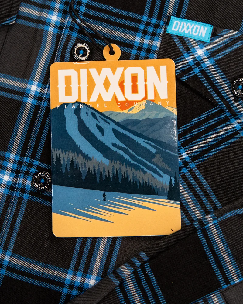 Forged for the cold and built to last, the Hardpack Flannel layers rugged comfort with a black, gray, blue, and white plaid. Finished with button-up styling and Dixxon’s signature durability, it’s the perfect everyday essential.