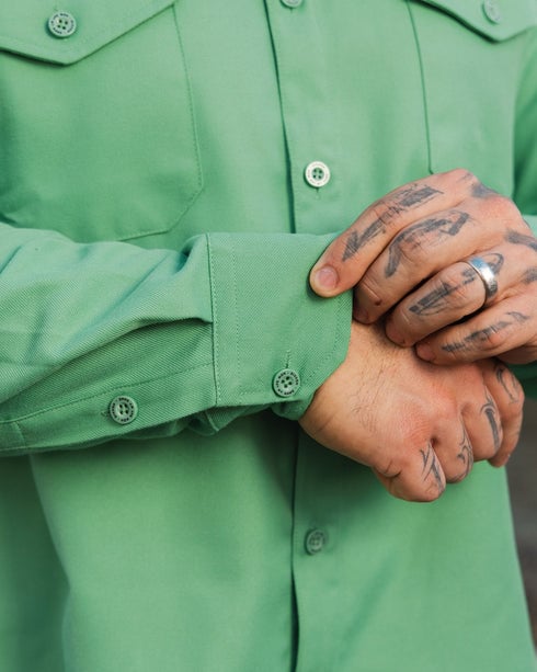 • Clean, calculated, and quietly iconic, the Heisenberg Flannel brings the cool precision of a certain legendary chemistry teacher with its bold, solid green profile. This essential delivers a sharp look with unmistakable attitude.