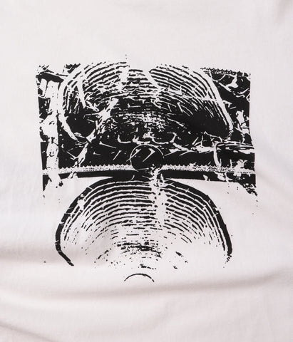 Delivered in a premium 200GSM jersey cotton and delivered in our standard t-shirt block for a modern and comfortable fit. Featuring front, back and sleeve graphics in a soft hand plastisol screen print on a solid oyster base color.