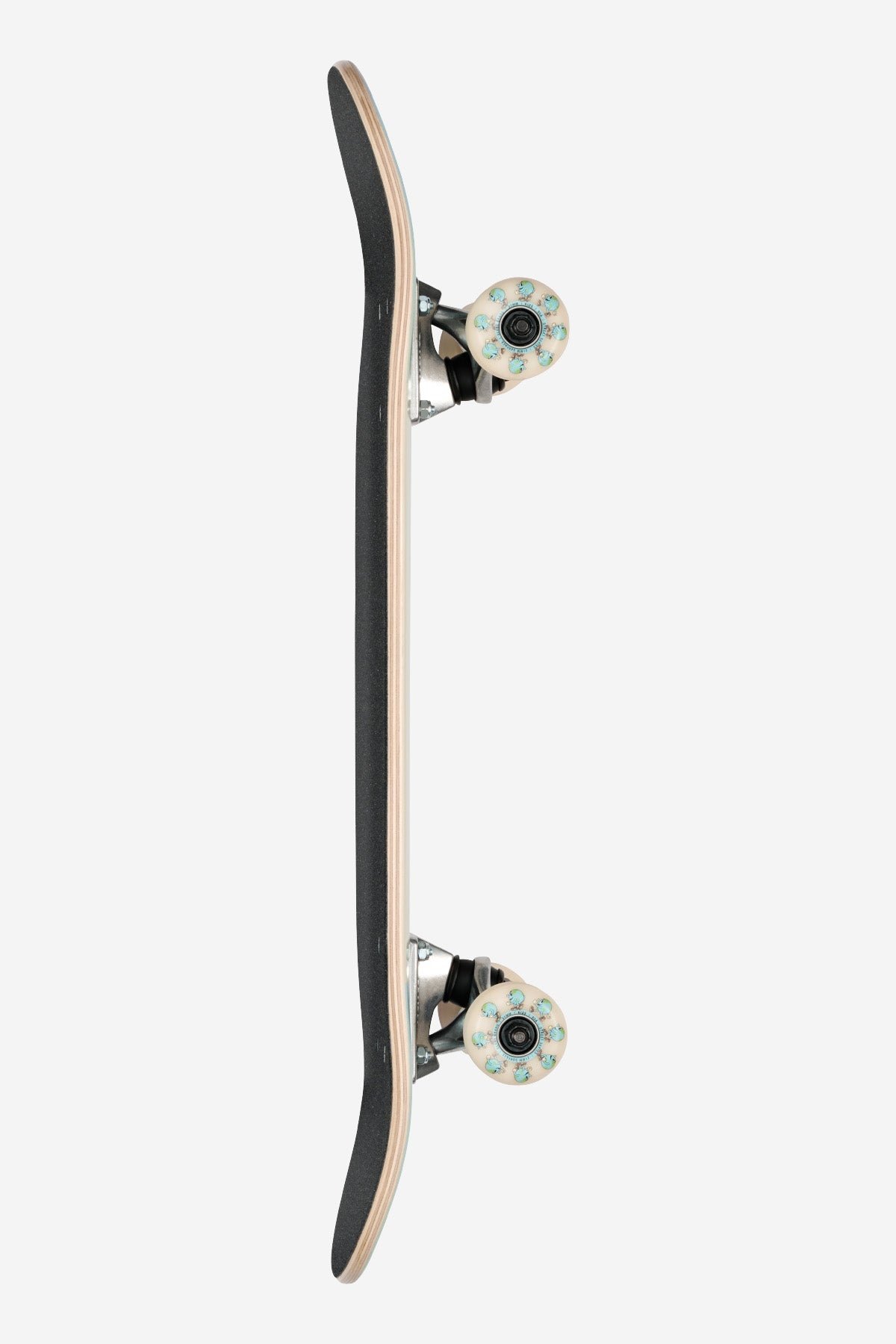 The Resin-7 ply Hard Rock Maple deck is 7.125" wide x 25" length x 11" wheelbase and has mellow concave. It comes complete with 4.25" Tensor Alloy trucks that have softer bushings to make turning easier for lighter riders, and 51mm wide 95a street Wheels.