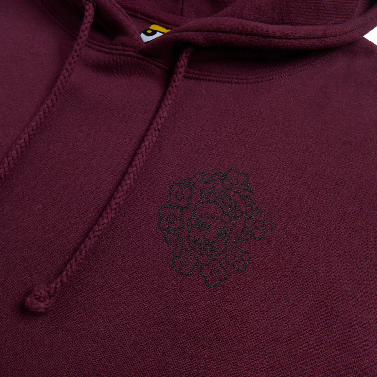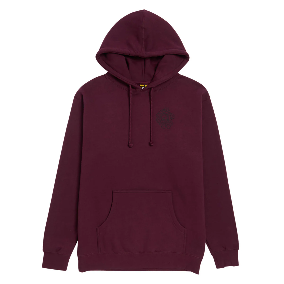 The Krooked MG Hoodie in Maroon features a multi-color embroidered logo. Made from a soft cotton blend, it includes a fleece lining for warmth, a kangaroo pocket, and an adjustable drawstring hood.