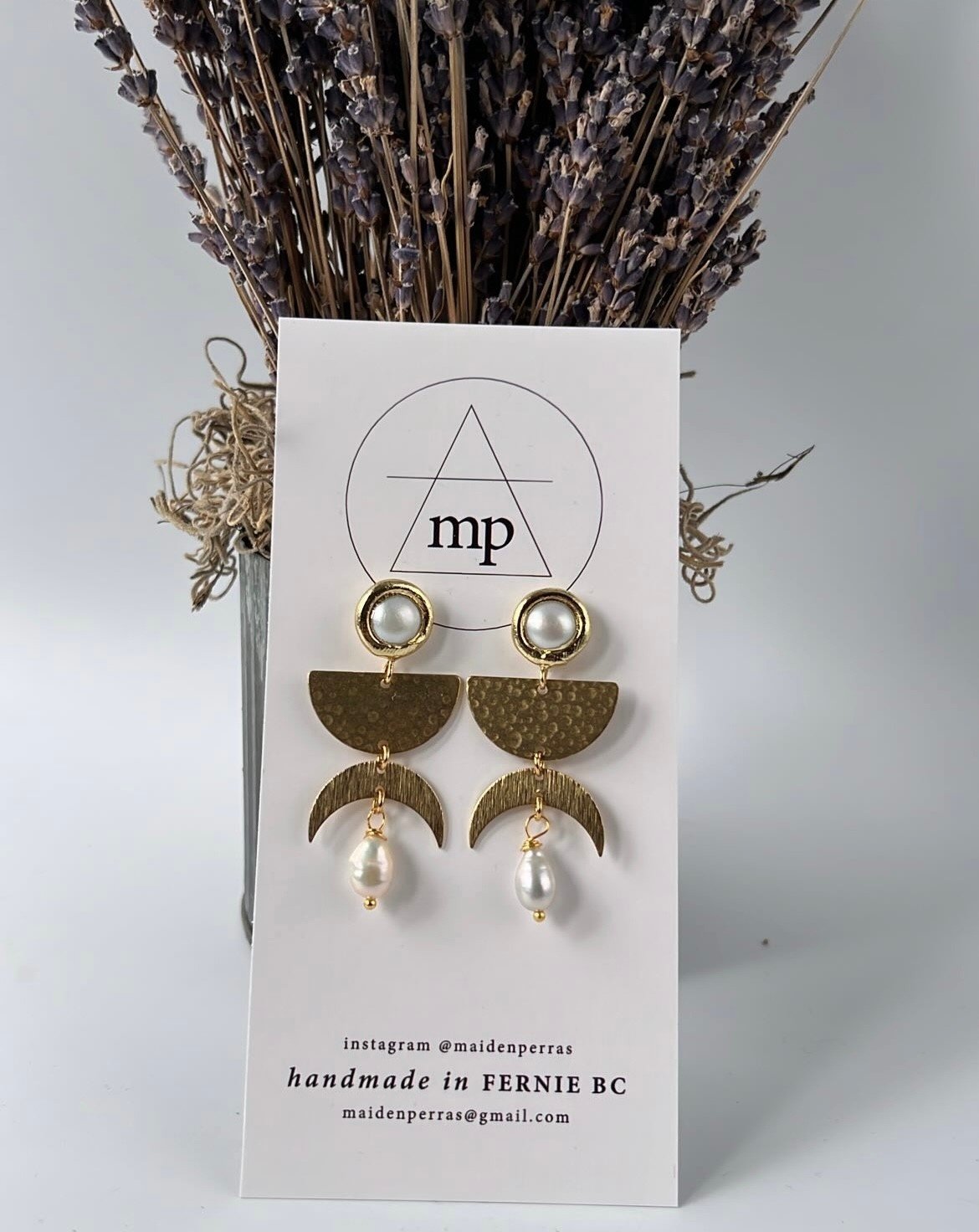 Maiden Perras Fresh Pearl Moon Earrings | Gold