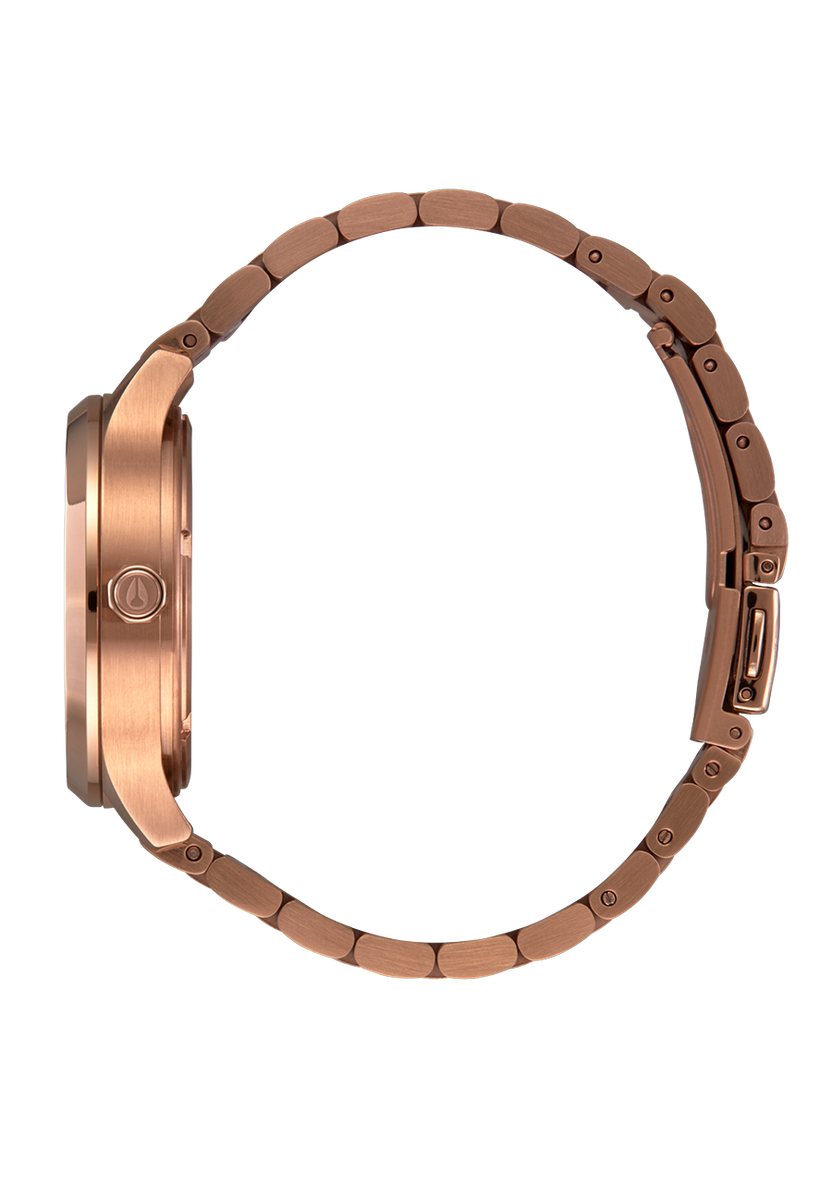 33.5mm custom stainless steel case with a 50 meter / 5 ATM water rating. Comes with a hardened mineral crystal, custom dimensional crown and stainless steel screw down caseback with intricate etched patterns.