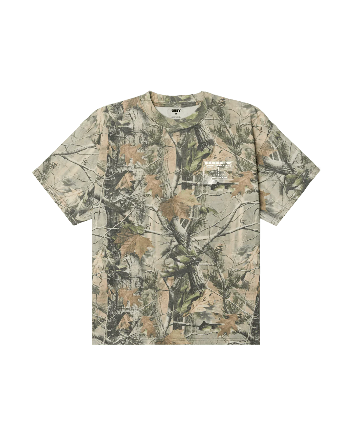 Obey provides the Leaf Collegiate t-shirt in a woodland camouflage pattern. Created in an oversized, loose fit, the 100% cotton short sleeve hosts a logo on the front for a classic streetwear vibe.