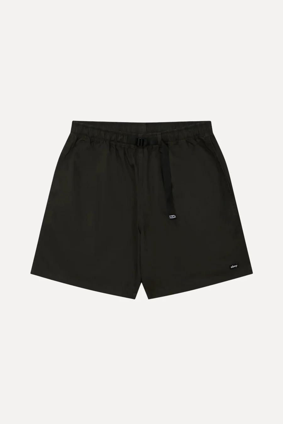 These lightweight twill trail shorts from Obey offer a relaxed fit perfect for daily adventures. Crafted from 100% cotton with an elastic waist and webbing belt with slider closure, they ensure a comfortable wear.