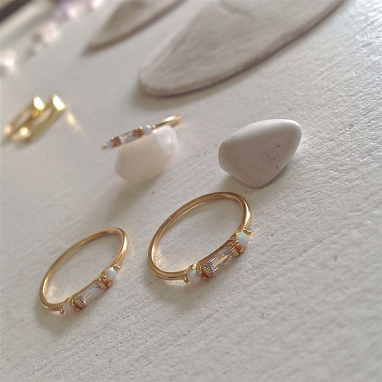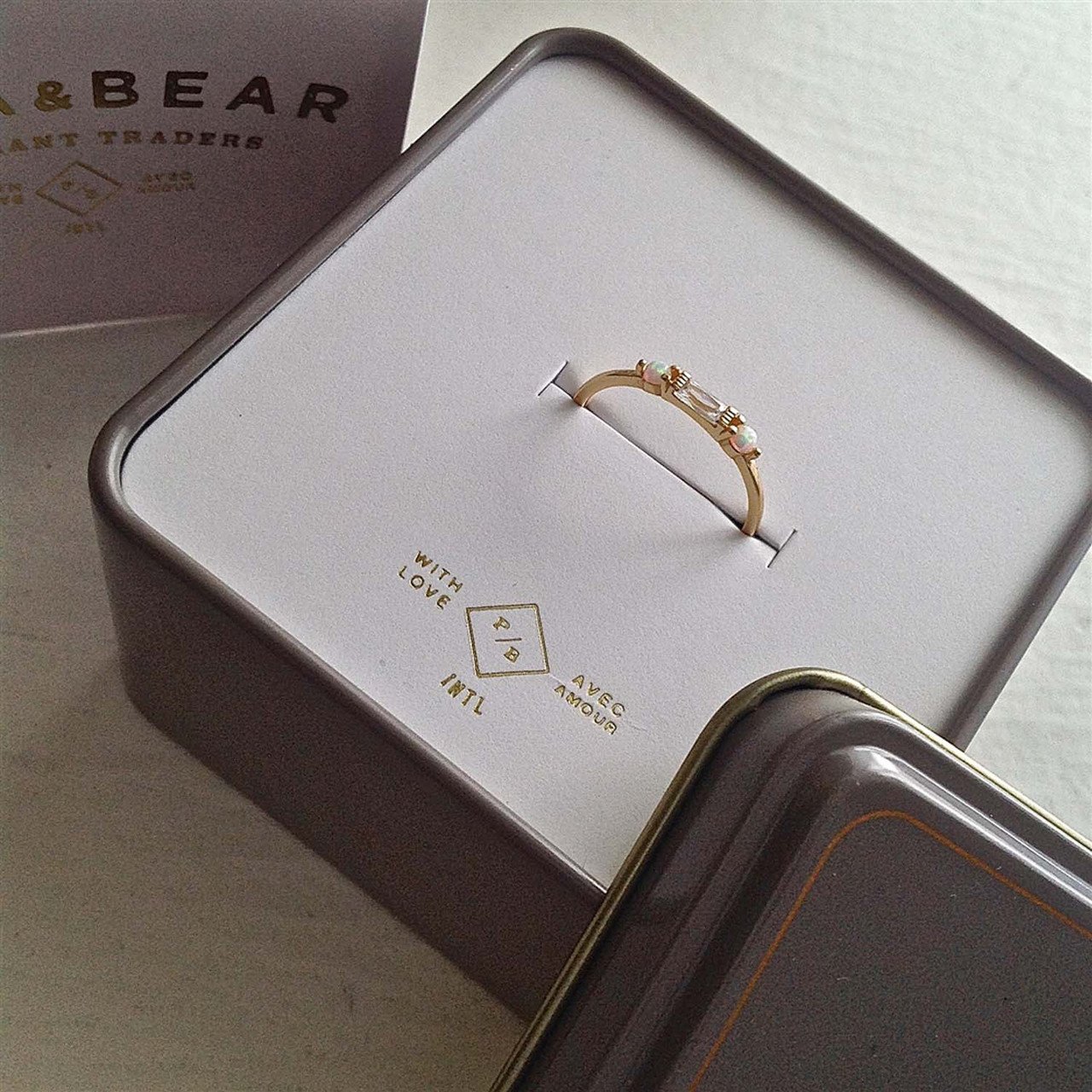 - Packaged in Pika & Bear tin gift box. Includes gift card with French & English text and polishing cloth.- P&B logo engraved inside band.- Composed of 1.5 micron 18k gold plated 0.925% sterling silver (hallmarked), e-coating, lab opal, rhinestones.- Meets Canadian standards definition of vermeil, at least 1.5 micron of gold plating over 0.925% sterling silver.- Hypoallergenic nickel and lead free.