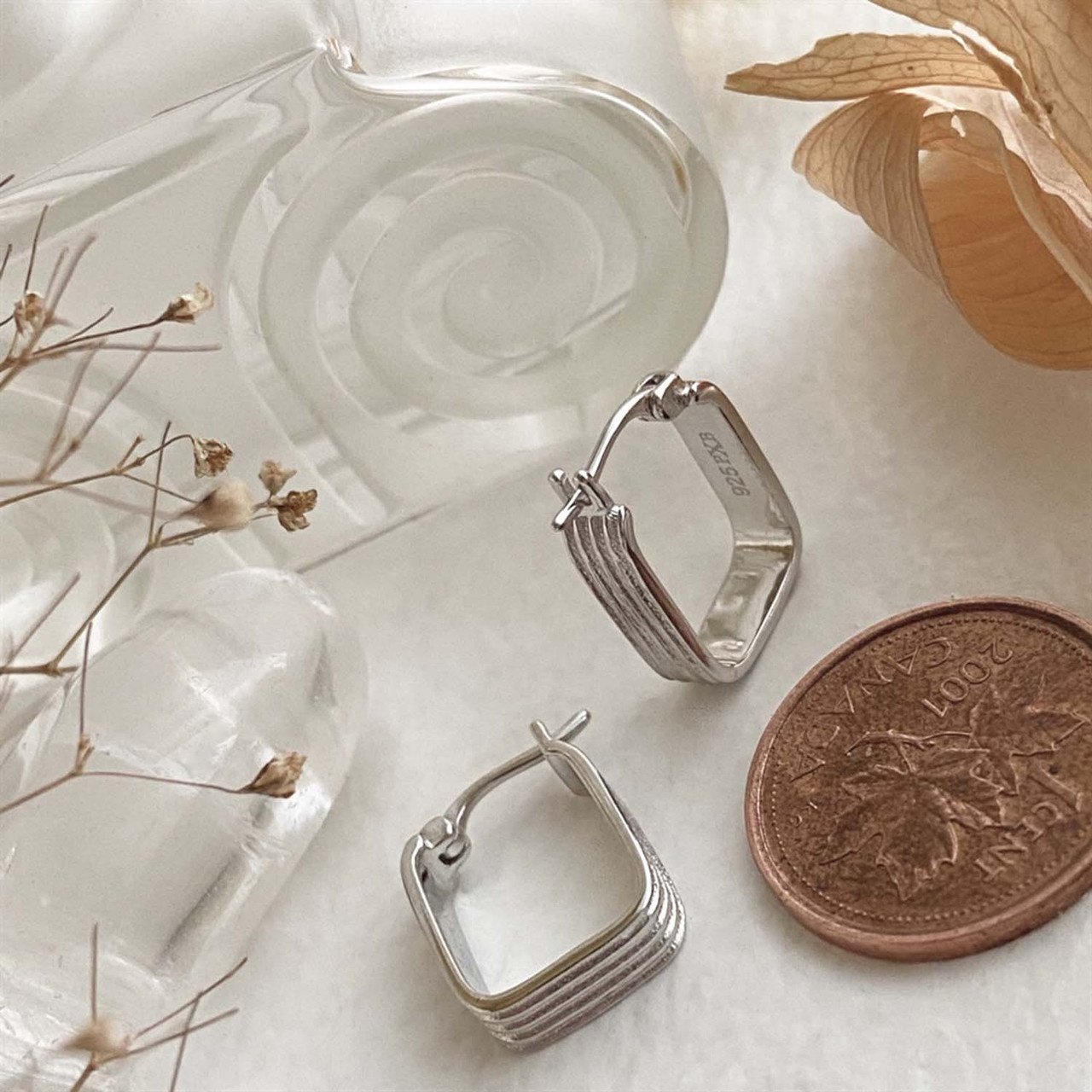 Pika & Bear Tuscan 10Mm Textured Rectangle Hoop Earrings | Silver