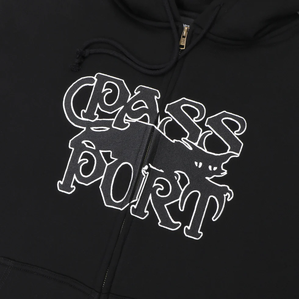 Pass~Port Slinkin' Zip Hoodie in black from range #46. This Zip Hood features a direct embroidered front design and is made from a Cotton Poly Blend.