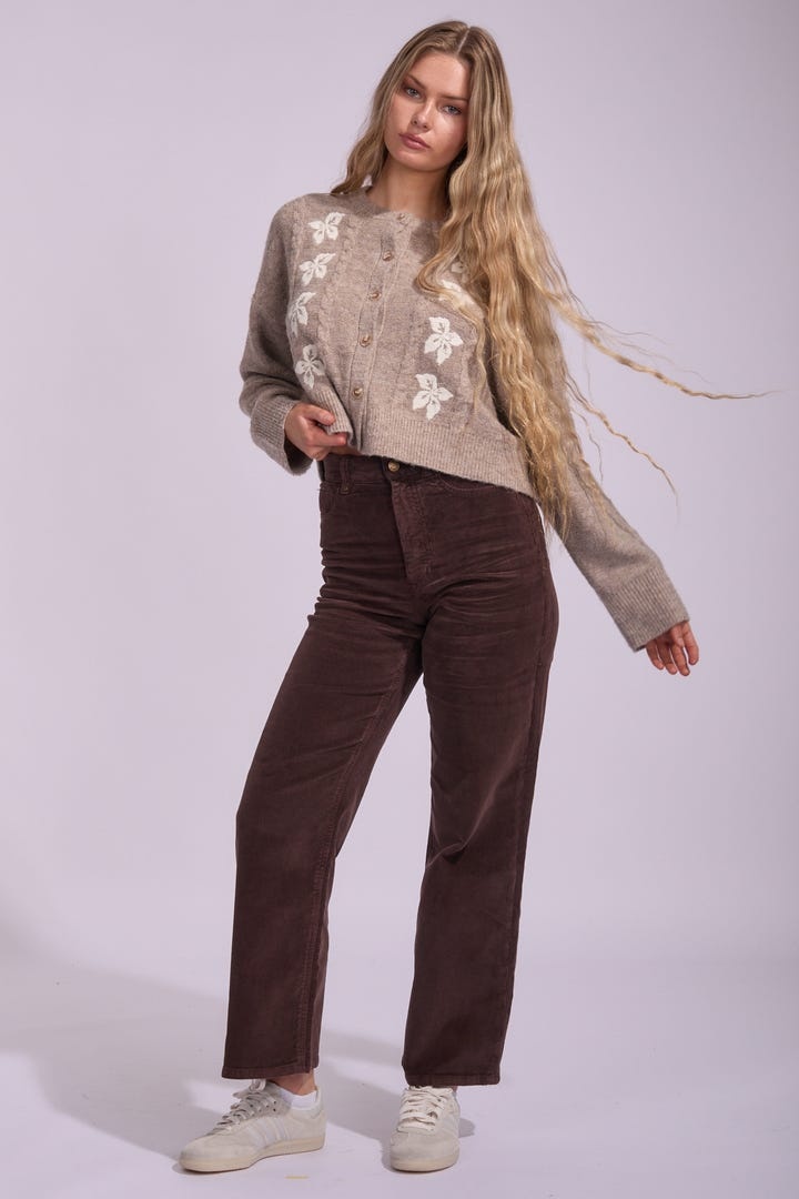 RHYTHM BLANCA FLORAL CROP CARDIGAN NAT