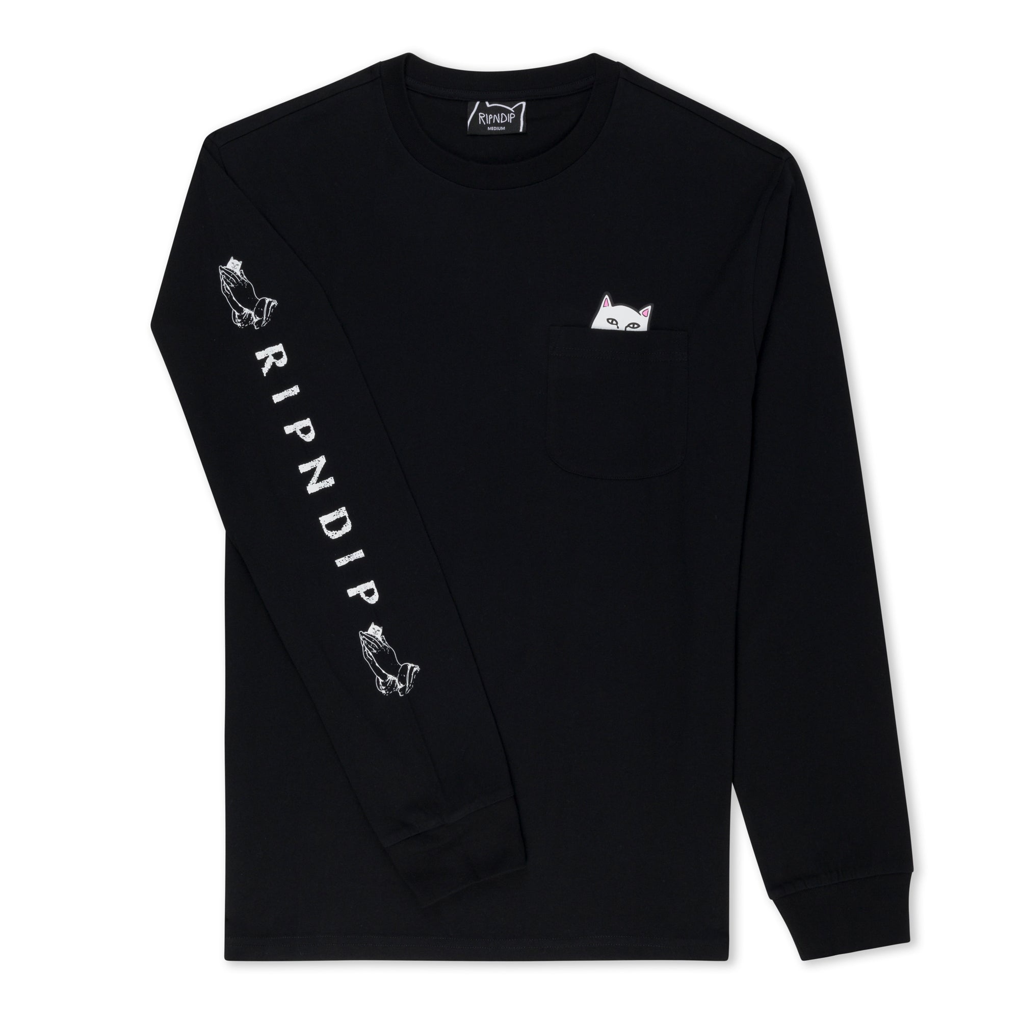 The Lord Nermal Long Sleeve Pocket Tee from RIPNDIP keeps things classic with a playful twist.