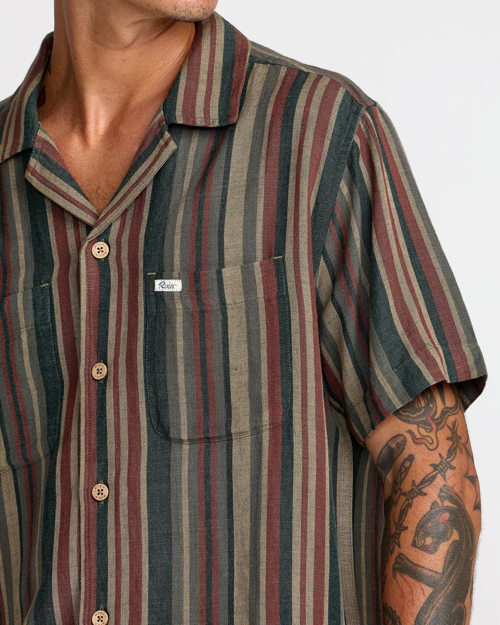 RVCA Exotica Stripe Short Sleeve Shirt | Sage Leaf