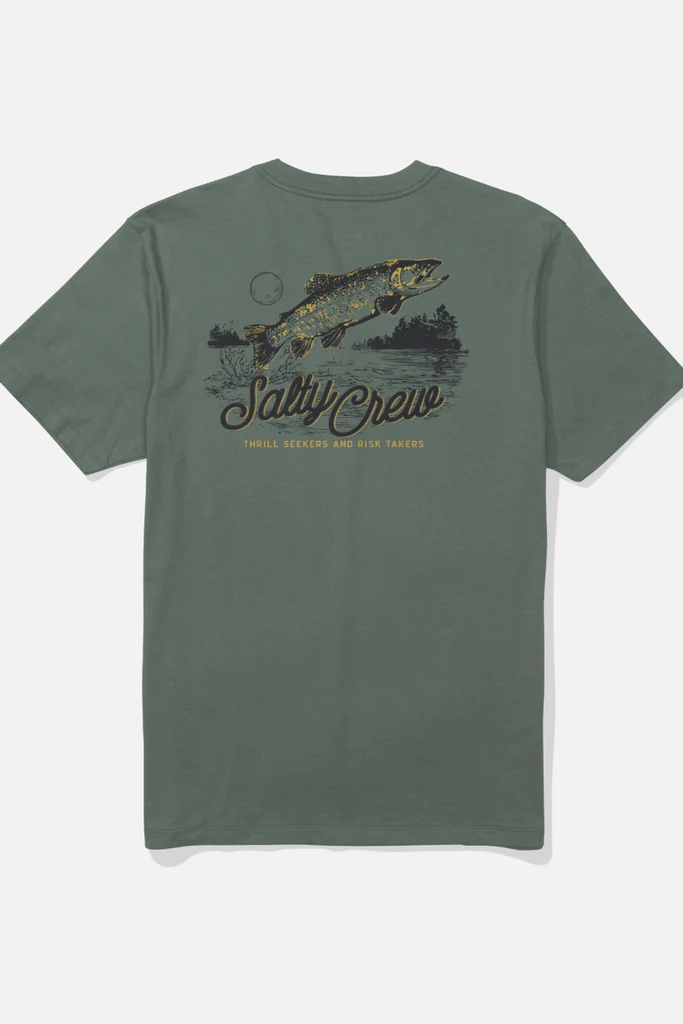 The Salty Crew Fish Fest SS Tee in Laurel Wreath is crafted from premium cotton. Featuring iconic ocean-inspired branding, it offers versatile comfort for beach days, casual wear, or layering with a classic look.