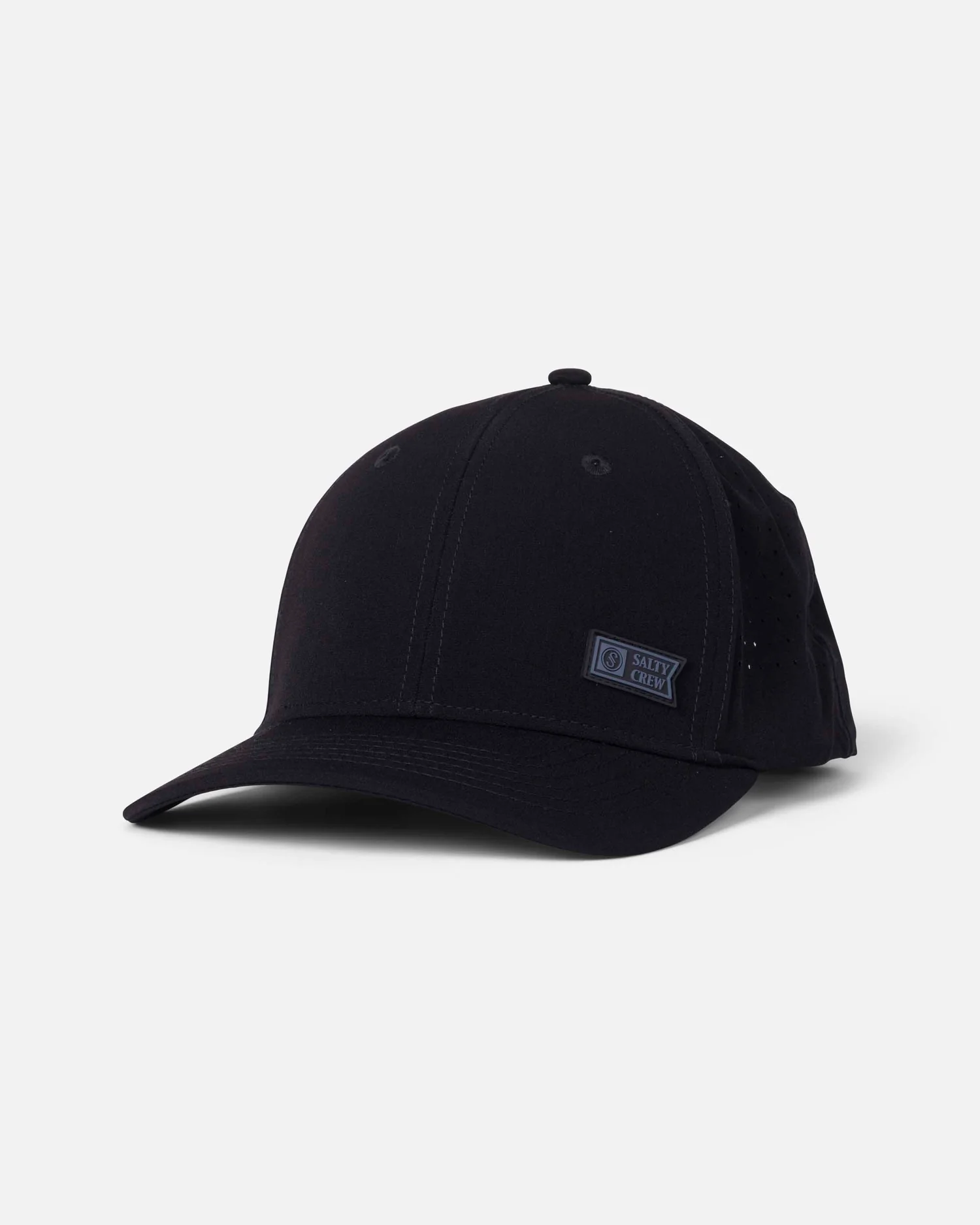 Lowdown Snapback in Navy is made from a water resistant polyester fabrication. Structured 5 panel, low-crown height, laser-cut side and back panels, contrast visor rope & rubber patch.