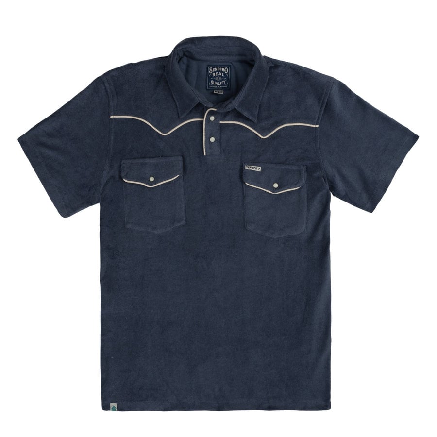 The Westernest polo this side of the Mississippi. In a vintage terry cloth, with Western shape pockets and yokes, and pearl snaps.