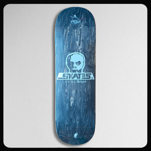 Skull Skates "9" x 32" Diehard Compound Concave" [14 1/2" wheelbase]. Versatile dimensions, identical steep Twin Tech nose and tail angles, steeper wide concave profile. Black stain. Product of Canada.