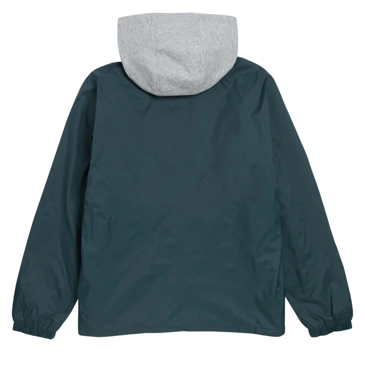 The Vans Torrey Hooded Coaches Jacket in Mystic Moss combines a classic skate aesthetic with weather protection. Features a water-resistant nylon shell, snap-front closure, adjustable hood, and logo chest print for durable, street-ready style.